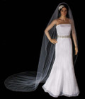 108 Inches - Cathedral Veil With Glary Hand Sewn Double Shiny Silver Bugle Beads And Swarovski Rhinestones Along Edge