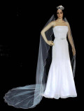 108 Inches - Swarovski Crystals And Rhinestones Decorated Scalloped Design Cathedral Veil With Silver Bugle Beads And Shiny Seeds Along Edge - Beads and Sequins