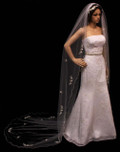 1st Class Bridal | FC Bridal 108 Inches - Sweet, Tasteful Flower Design Of Silver Bugle Beads And Seed Beads, Embellished With Scattered Rhinestones And Pearls, Curly Edge