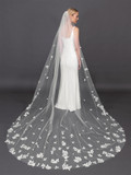 108" L Cathedral Bridal Veil With Hand-Trimmed Clusters Of Scattered Applique Petals - 4720V-I-108