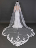 120" Long x 108" Extra Wide Royal Cathedral Bridal Veil with Floral Lace Vine Appliqués 4685V-I-120 - FAST SHIP