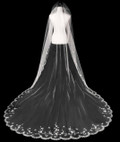 Style: 120x72 - Royal Length, Luxurious Hand Crafted Floral Design Veil - Bead & Sequins