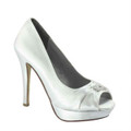 Description: Ada is an updated bridal design featuring a classic knot with a large platform. This dyeable white satin peeptoe pump is sexy and sophisticated. A perfect look for you on your special day.