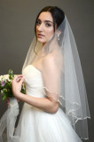 Description: Ansonia Bridal Veils & Accessories 718 - TwoTier Fingertip with Scalloped Beaded Edge. Perfect for adding smashing bridal style, this veil balances out a bottom-heavy dress without the drag of longer illusions.
