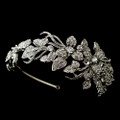 Antique Silver Clear Rhinestone Side Accented Flower Vine Headband Headpiece