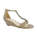 Beatrix from Touch Ups is a comfortable wedge sandal with a jeweled t-strap. Made with a nice glitter material, this style features a 1.75 inch heel and a synthetic sole.