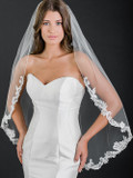 Bel Aire Bridal Veil V7500 - 1-tier fingertip rolled edge veil with scroll and floral lace