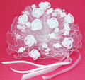 Description: Searching for a beautiful bouquet that one of your single bridesmaids or girlfriends can hold onto for a lifetime? Well here at Wedding Factory Direct we offer a large collection of Bouquets that can be treasured in remembrance of your wedding day. Simply elegant, this bouquet has beautiful materials of lace ribbons and sheer materials, which makes this artificial bouquet light weight and easy hold.