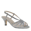 Clara is a great strappy sandal with a 1.75 inch heel and is made out of a great synthetic materials covered in stones with mesh accents on the vamp. Available in medium and wide widths.