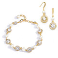 We promise you'll adore this lovely gold and pearl special occasion bracelet and earrings set or your Money-Back. Treat yourself or someone you love to the sophistication of pearl jewelry with a hint of diamond sparkle.... at an irresistibly low price.