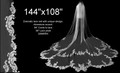 Make an unforgettable entrance with our Dramatic Lace Veil with Rhinestone Accents (3284RRX). This stunning 144x108-inch cathedral veil features an intricate lace design, shimmering rhinestone embellishments, and a breathtaking 38" lace peak. With a 54" comb-to-lace drop, it drapes beautifully for a regal, ethereal look. Perfect for brides who want to add elegance, sparkle, and drama to their wedding day ensemble!