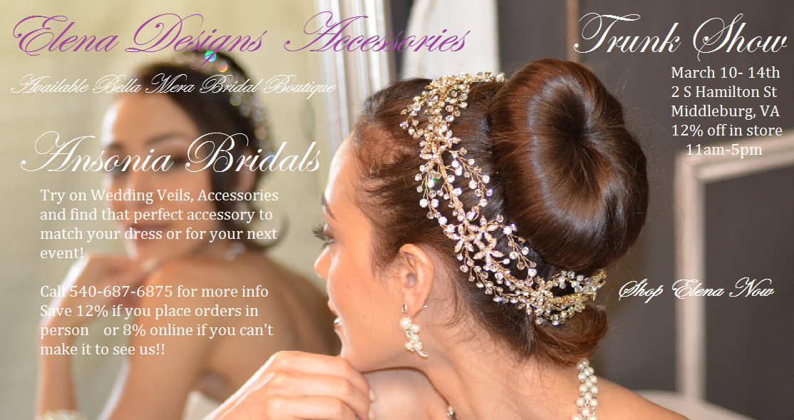 Elena Designs & Ansonia Bridal Veils Trunk Show Extended! Ansonia Bridals and Elena Designs. Still looking for that perfect accessory for your wedding or event?