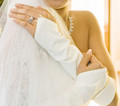 Dainty crystal beads are perfectly scattered along these silky matt~satin elbow length gloves. These gloves add the finishing touch to your wedding gown.