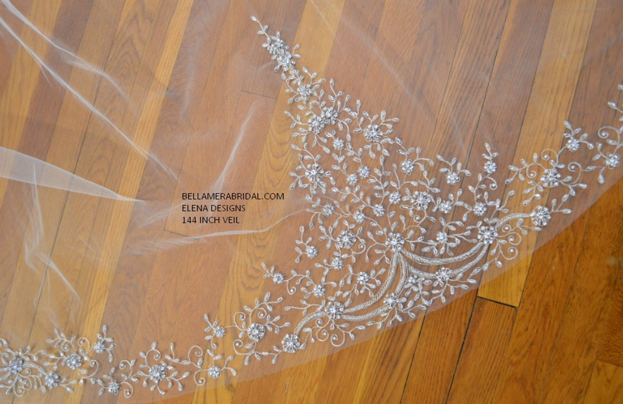 Style: Elena Designs style E1211 - 144" - Cathedral length veil with heavily embellished edge