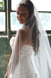 Elena Designs Wedding Veil E1169S - Beaded Embroidered edge veil with pearls - 40" X 60″