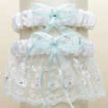 Embroidered Wedding Garter Sets with Scattered Crystals - White with Blue G021-BL-W