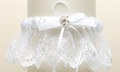 Description: Our 2 1/2" h all White bridal garter has delicate tulle generously embroidered with climbing vines. It is finished with a scalloped skirt, satin ribbons & a brushed silver flower with baby pearls & crystal. Our boxed garter comes in 3 other color ways