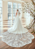 En Vogue Bridal Cathedra Veil V2394WRC - Glitter tulle with floral lace - 144" Long