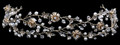 Description: Rhodium plated headband with floral design and crystal/pearl bead accents