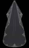 Description: English tulle mantilla cut veil with embroidered and beaded edge