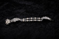 Description: Erica Koesler Jewelry J9360, Opulent bracelet of 2 pearl and crystal strands between rhinestone filigrees with a pearl/rhinestone clasp. (ivory or white).