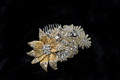 Description: Erica Koesler Comb A-5516 - Floral rhinestone appliques- A Lavish comb of 6 assorted gold embroidered floral rhinestone appliques.