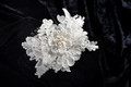 Description: Erica Koesler Comb A-5544 - Venise & Alencon Lace Comb. 6” Venise & Alencon lace comb with a center lace flower accented with a pearl & crystal cluster.