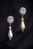 Description: STYLISH HANGING TEARDROP PEARL FROM AN EMERALD RHINESTONE SHAPED POST.  (IVORY OR WHITE PEARLS)  *SILVER ONLY