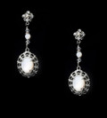 1 ¾” hanging encased oval Mother Of Pearl earring on a post….