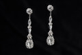 Description: Soft & Lavish 2″ hanging earrings of thin rhinestone filigree with an encased rhinestone emerald shape drop on a round rhinestone post