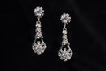 Description: Lavish - 1 1/2″ long teardrop filigree shape earrings of rhinestones.