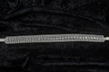 Description: Erica Koesler Headband A-5519 - Headband with Velvet Ribbons. 3 strands of rhinestone chain that drape as a headband with velvet ribbons. *Silver Only