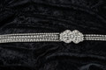 Description: Erica Koesler Headband A-5525 - Rhinestone Soft Headband. A soft headband of 4 rhinestone and pearl/crystal chain on one side and 3 chains on the other with a center 3″ rhinestone filigree accented with Swarovski pearls with back clasp. *Silver Only