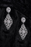 Description: An elongated rhinestone filigree pendant on rhinestone posts.