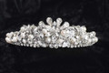 Description: 1 1/2″ high rhinestone tiara with electric rhinestones & fresh water pearls on a rhinestone chain band *Silver