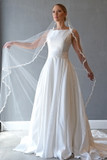 Description: Erica Koesler Wedding Veil 865-90 - Venise Lace Edge Cathedral. 90” Long;has-color-chart=/product_images/uploaded_images/ericakoeslertulleswatchcolors.jpg mantilla (108" width) with a Lavish ¾” Venise lace edge on a wire comb.
