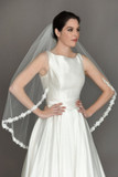 Erica Koesler Wedding Veil 907-35 - (35" inches long) - Floral lace beaded with pearls & sequins, wire comb