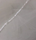 Description: 42" long (108”) single tier with a diagonal seed bead edge on a silver comb. (Silky silver bead only) Diamond white, ivory or white tulle