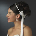 Simple and dainty pair of stefana features lovely petite fabric flowers with faux pearl centers that sit atop a delightful braid pattern made from two silk cords and a strand of luminous faux pearls. An elegant double bow sits on the back and is made from charming silk ribbons that stream down to stunning length. These ribbons will be tied together to join the two stefanas during the crowning ceremony in your traditional Greek orthodox wedding. These stefana crowns are available in both white and ivory.