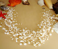 If you love freshwater pearls this is the necklace for you! This gorgeous couture-inspired freshwater pearl necklace features sprigs of freshwater pearls adjoined with a sterling silver clasp. Perfect for any elegant occasion. Beautiful and elegant, this bridal necklace features silver plating and a majestic cluster of ivory freshwater pearls. This necklace is the ideal accessory for your winter or beach wedding, and measures 14" long and 3” at its widest point with a 2-1/2” extender and lobster claw clasp. Matches earrings E 8192 and bracelet B 8192.