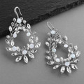 Your brides will adore our hand-crafted boho dangle hoop earrings aglow with clear and opal crystals. From the floral cluster tops to the stunning hand-wired hoops, these bold yet lightweight earrings are a must-have for your store's wedding accessories display. 2 1/2" high x 1 3/8" wide. Silver plated with ½" pave fishhook tops. The flexible wires allow the gems to be positioned to customize the look.