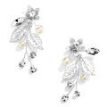 Handmade Floral Wedding Earrings with Austrian Crystals, Matte Silver Leaves and Ivory Pearls 4598E-S