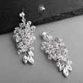 Handmade Statement Earrings for Brides with Cascading Crystals, Flowers & Silver Leaves 4623E-S
