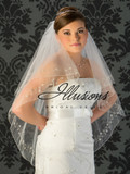 Illusions Bridal Veils Style V-7028 - 2 Tier edge is silver metallic floral detail with rhinestones and bugle beads along edge