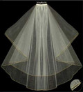 LC Bridal Style V2016-180 - Two Tier Fingertip Gold Thread Serged/Hemmed Edge Veil