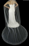 Description: Charming Cathedral Veil with Austrian Crystals Rhinestone, Hand Sewn Silver Bugle Bead, Pearls and Sequins.