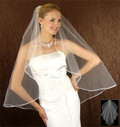 Description: Perfect One Tier Fingertip length veil Cascading angel cut with 1/8" ribbon edge.