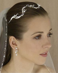 Description: Unique headband tiara of Austrian rhinestones. Rhinestone encrusted swirls accented with pear shaped rhinestones.