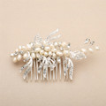 Description: Slide this breathtaking freshwater pearl bridal hair comb into any updo for a wedding look with romance and glitter. Mariell's hand-wired wedding comb boasts pave crystal leaves and pearl sprays for a graceful bridal headpiece