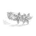 Description: Crystal Floral Headband features two large bejeweled flowers and a cascade of smaller daisies spanning 7" along the band x 2 1/2" h. The split headband is 14 1/2" around & is flexible for a perfect fit. It has an eyelet on each side.